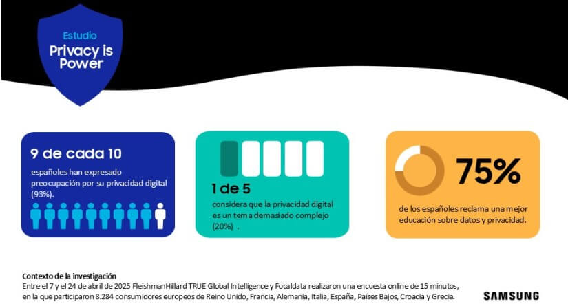 En plena expansión de la inteligencia artificial y los hogares conectados, la Generación Z y los Milenials se sienten superados por el reto de gestionar su privacidad digital. Según el estudio europeo Privacy is Power impulsado por Samsung, el 88% de los jóvenes de entre 18 y 43 años en España se siente estresado por esta cuestión, la cifra más alta de toda Europa (que se sitúa en un 75%). Es más, casi 9 de cada 10 europeos (88%) se sienten preocupados por su privacidad digital mientras que, en el caso de España, la cifra se eleva al 93%, consolidando así al país como el más preocupado de Europa en esta materia.