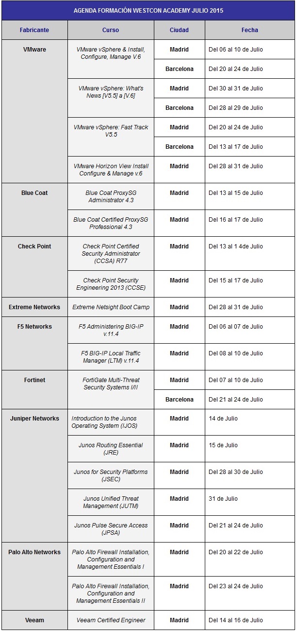 WestconGroup, distribuidor de valor añadido de soluciones de seguridad, comunicaciones unificadas, infraestructura de redes y data center, presenta su completo plan de formación para el mes de Julio. Las oportunidades de formación de Westcon están diseñadas para adaptarse a los requerimientos empresariales, horarios y modelos de aprendizaje.